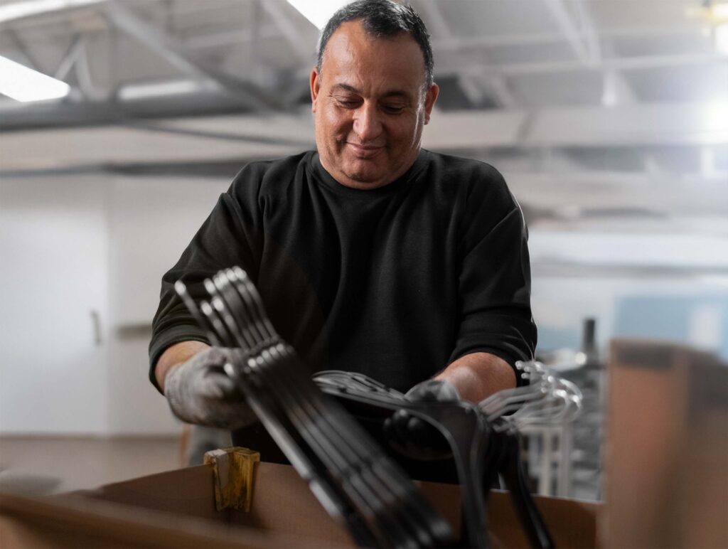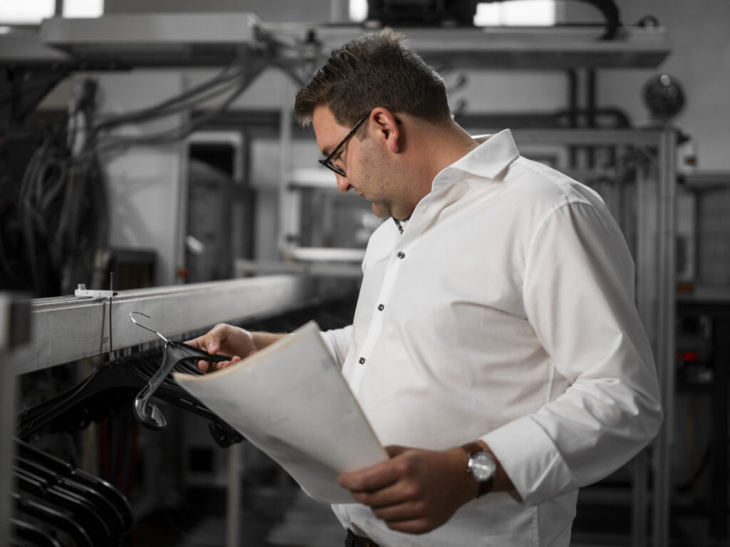 Unsere Produktion in Deutschland liefert hochwertige Kleiderbügel mit schneller Lieferzeit und ermöglicht eine zuverlässige Versorgung mit großen Stückzahlen. Profitieren Sie von gleichbleibender Qualität aus eigener Herstellung und einem Partner, der Ihre Anforderungen versteht.